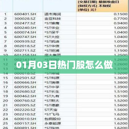 随着股市的日益发展,投资者对于热门股票的关注也日益增加,我们将探讨如何在01月03日操作热门股,帮助投资者更好地把握市场机会。