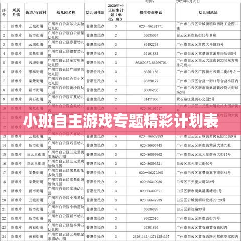 随着教育理念的更新,越来越多的教育工作者开始重视儿童在游戏中的自主学习,小班自主游戏专题计划表正是基于这一理念,旨在通过游戏的方式,激发小班幼儿的学习兴趣,培养其独立思考和解决问题的能力,本文将详细介绍这一计划表的内容、实施步骤及其意义。
