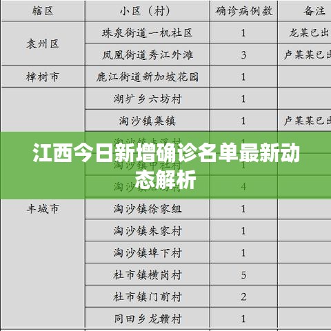随着全球疫情的持续发展,我国各地疫情防控工作依然严峻,江西省作为我国的一个重要省份,其疫情防控动态备受关注,本文将围绕“江西今日确诊名单最新”这一主题展开分析,为读者提供最新的疫情动态和防控情况。